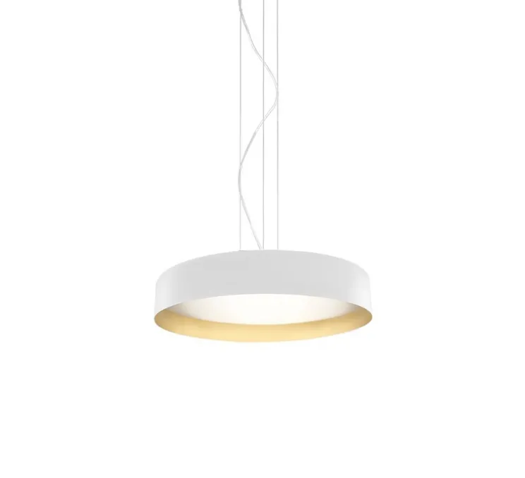 Pour intégrer la suspension Ginevra dans votre intérieur, pensez à l’installer dans une pièce au design minimaliste où elle pourra s’imposer sans dominer l’espace. Grâce à sa couleur blanche, elle se fond harmonieusement dans des décors sobres et épurés, tout en ajoutant une touche de sophistication avec son intérieur doré. Idéale au-dessus d’une table de salle à manger ou dans un salon spacieux, ses dimensions imposantes permettent de structurer l’espace sans le surcharger.