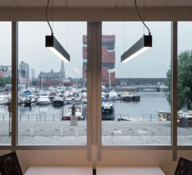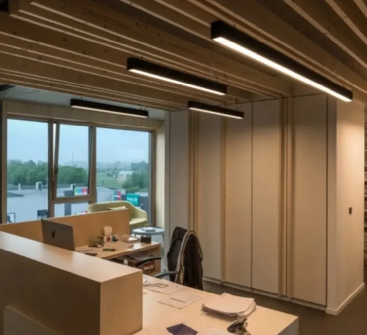 Montée en saillie, la suspension possède un module LED intégré (4000K, 6600lm, 85W) qui peut être remplacée que par un professionnel.