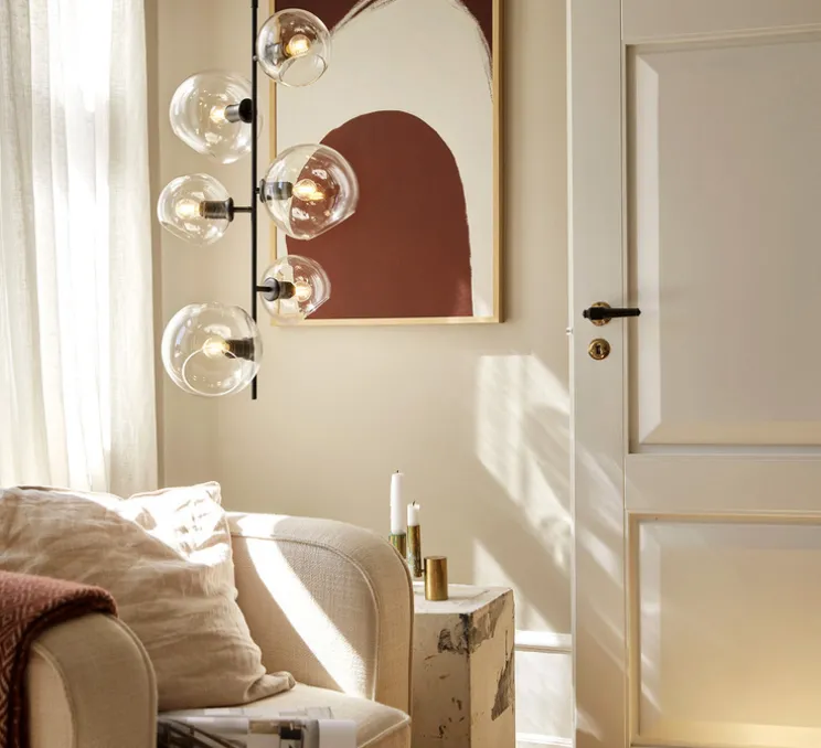 Avec son design original et élégant, la suspension Göte donne un second souffle au style scandinave avec des ambiances Art déco. Composée d’une structure en laiton et de six globes en verre transparent, elle offre un éclairage efficace sans éblouissement. Elle est idéale pour de nombreux espaces tels qu’une salle à manger, un salon ou encore une chambre.
