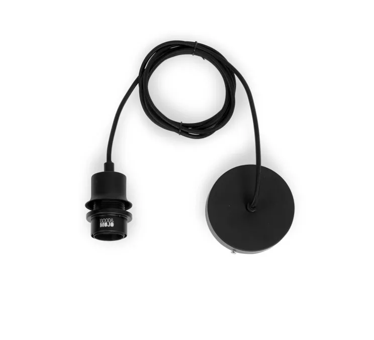 L’abat-jour mesure 38 cm de diamètre et 25 cm de hauteur. Le câble, en textile noir, mesure 2 mètres de long. Il est ajustable selon vos besoins.