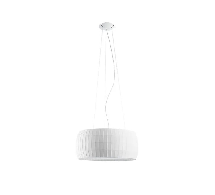 Cette suspension composée d’un abat-jour à ruban blanc et d’un diffuseur en polycarbonate blanc soutenue par une structure en métal blanc ravit votre intérieur en y apportant une touche naturelle.