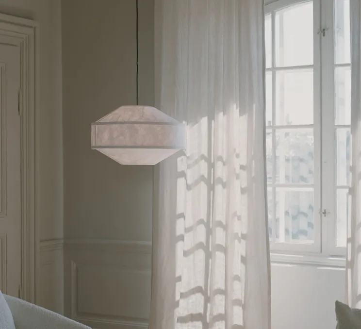 La suspension Kite 1W est une œuvre d’art en soi, mariant des silhouettes géométriques pures et avec une matérialité lisse et texturée grâce au Tyvek. Ses couleurs blanche et noire créent un contraste élégant, tandis que ses rubans adhésifs délicats dessinent les contours des formes, ajoutant une dimension de profondeur. Que ce soit présentée seule ou en combinaison avec d’autres lampes de la collection, la Kite devient un élément sculptural qui attire tous les regards.