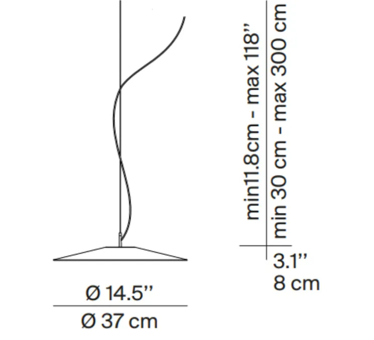La suspension mesure 37cm de diamètre et 8cm de hauteur. Le module Led intégré a une puissance de 22W avec une colorimétrie de 2700K. Variable en coupure de phase. Rosace et câble de 3m inclus. Elle possède un IRC de 90 promettant un rendu réaliste des couleurs.