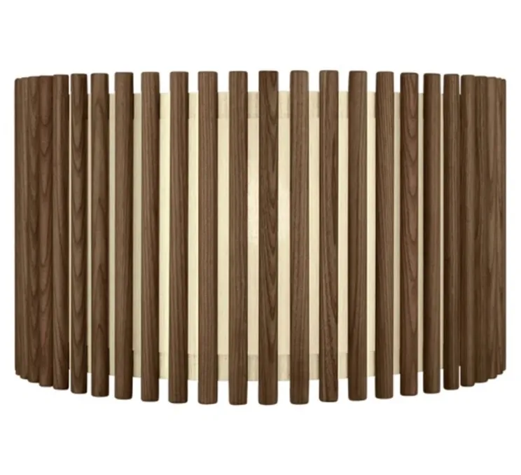 Composée de tissus et de lamelles de bois, avec une couleur chêne foncé, un diamètre de 44,7cm et une hauteur de 28,7cm, la Komorebi Circle Large est parfaite en intérieur.