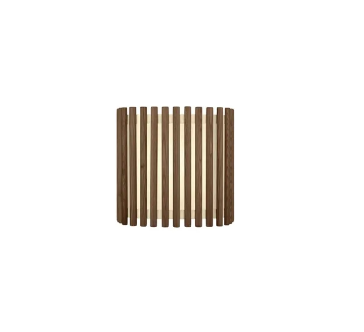 La suspension Komorebi composée de tissus et de lamelles de bois, est aussi disponible en couleur chêne, et en taille large. Le produit est composé de son abat-jour ainsi que de son câble.