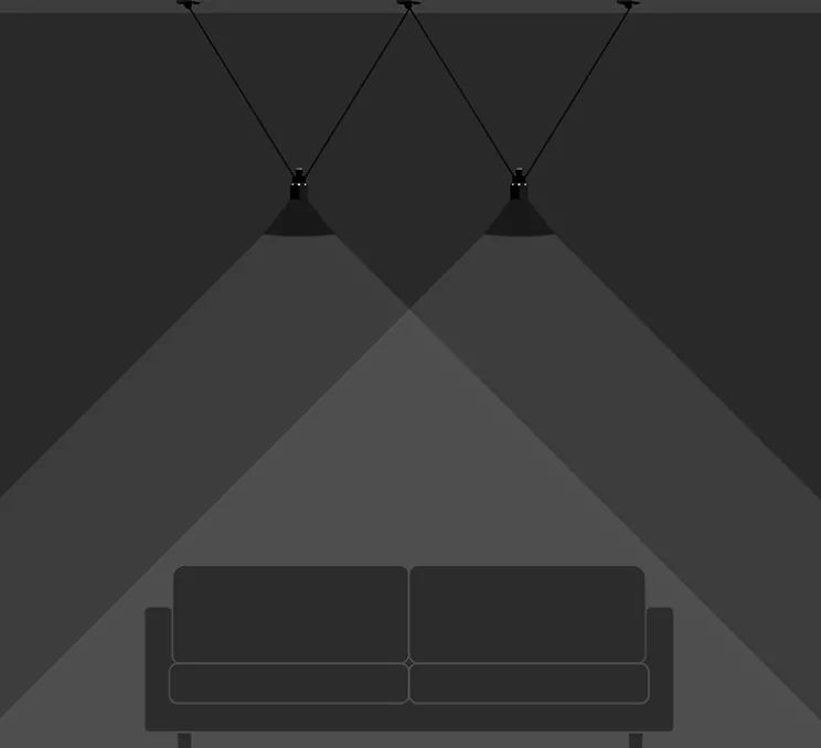 Des accessoires permettent de composer en ligne ou sur quatre axes de multiples compositions à partir d’une seule source d’électricité, ainsi que de déporter la suspension à un endroit précis, peu importe la position de l’alimentation électrique.