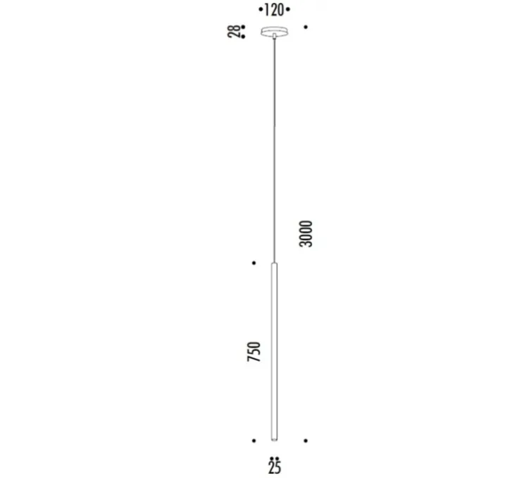 La suspension mesure 75 cm de hauteur et 2,5 cm de diamètre. Luminaire compatible avec une alimentation sur système Endless. Le module LED intégré de 5,6 W diffuse 290 lm avec une colorimétrie de 2700 K (blanc chaud). Possède un IRC de 90, promettant un rendu réaliste des couleurs. Driver non inclus. Accessoires obligatoires non inclus (voir produits indispensables).