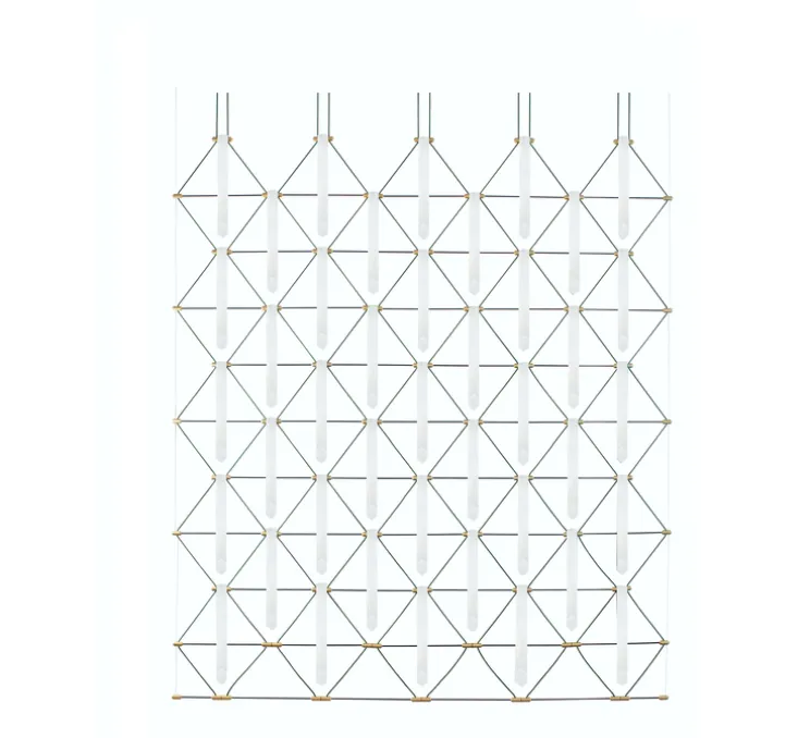 Il y a une infinités de finitions, offerte par le tissu et le fil textile qui peuvent pour être agencées en un jeu de lumière graphique et personnalisable, qui sculpte l’espace.