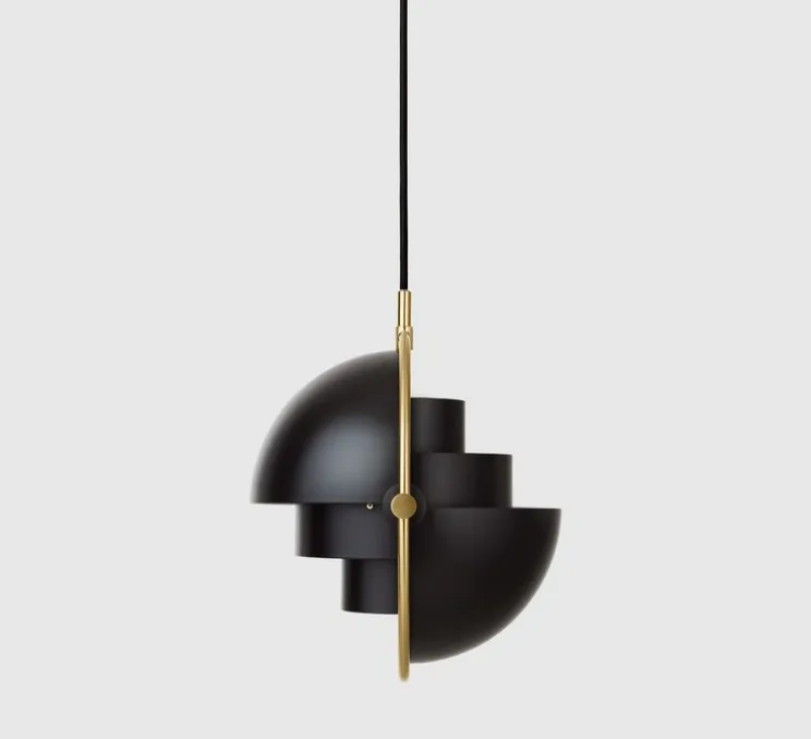 La maison d’édition Gubi réédite la célèbre suspension Multi-Lite Small, laiton et noir anthracite de Louis Weisdorf.
