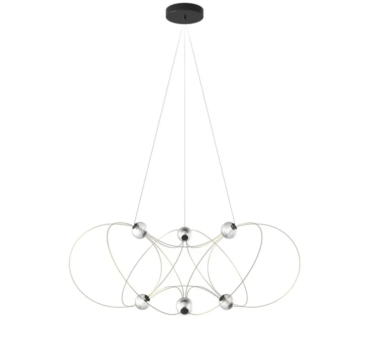 La suspension Munari évoque « un Spirographe cosmique avec ses planètes-lumières suspendues à une structure porteuse et conductrice. Ces atomes lumineux gravitent jusqu’à cinq mètres et s’assemblent facilement grâce à une notice de montage incluse dans une boîte en carton plat, en référence aux jeux éducatifs de Munari ». Elle se compose de filin en acier souple et de sphères en polycarbonate qui renferment la source lumineuse.