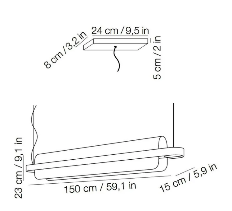 Nami mesure 1,5 mètre de longueur et 23cm de hauteur. Cette suspension est fournie avec sa source de lumière LED, 2700 kelvins et 4800 lumens (inclue). Sa lumière et son éclairage sont d’une qualité époustouflante, votre intérieur est véritablement illuminé! Elle est également équipée d’un câble d’1,8m.