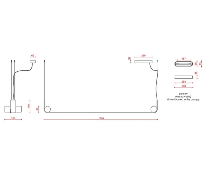 Cette suspension inclut une source LED d’une puissance de 60W et dimmable en coupure de phase, de 8000 lm (2700K). Elle est équipée d’un câble de 1,25m. La rosace à décentraliser est incluse. Driver inclus. Montage en saillie.