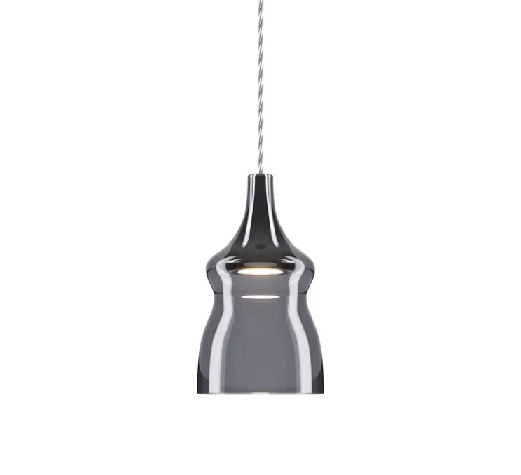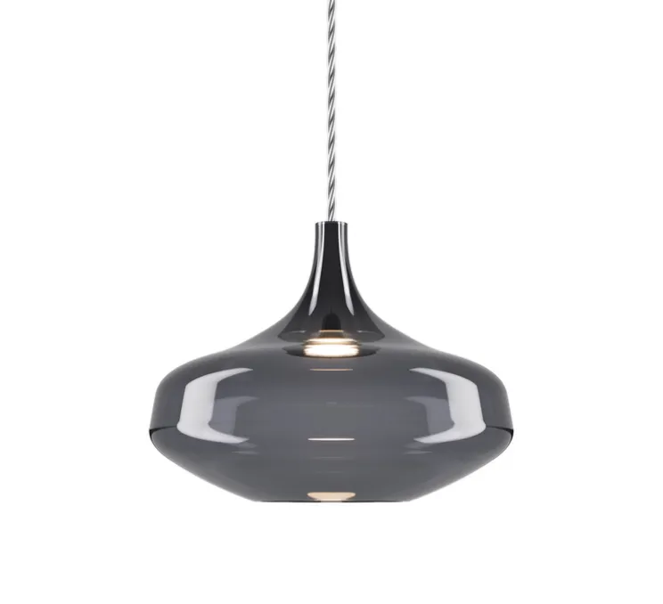 Ce luminaire se compose de 24 suspensions aux finitions gris fumé et cristal, suspendues à une rosace circulaire blanche, pouvant être personnalisée selon vos préférences. Avec huit suspensions Nostalgia Small, sept suspensions Nostalgia Medium et neuf suspensions Nostalgia Large, cette création offre un éclairage diffus à 360°, créant une ambiance chaleureuse et élégante. Le câble gris de chaque suspension mesure 3,8 m de longueur, assurant une grande liberté d’installation.