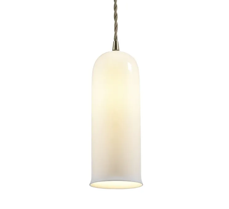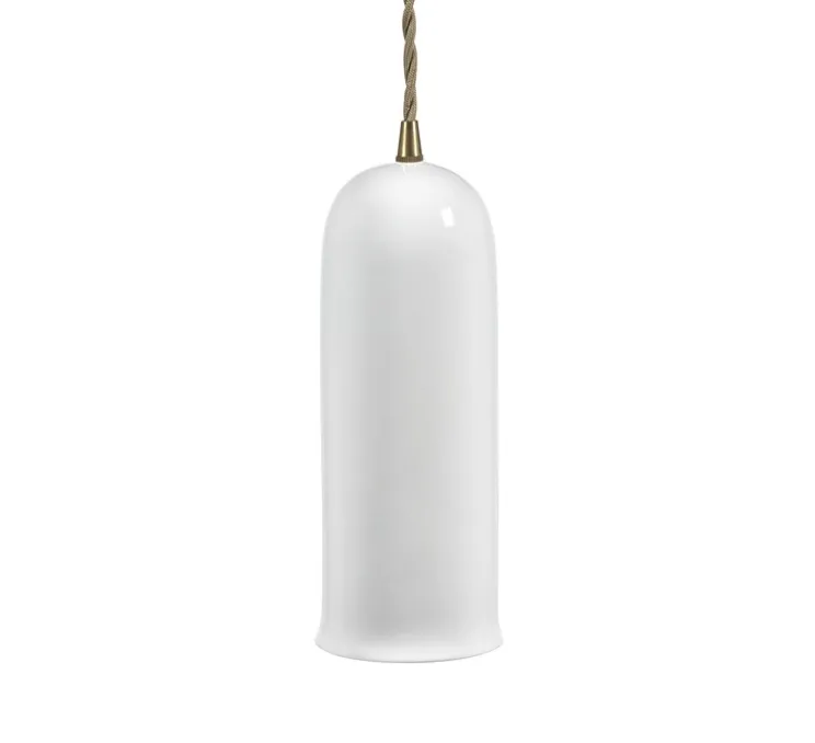 La suspension N°1 se compose d’un abat-jour cylindrique en porcelaine bone china ultrafine attaché à un câble tissé par une attache en laiton. Pour adoucir ce luminaire à la forme intemporelle, le bas de l’abat-jour est légèrement recourbé pour avoir la forme d’une clochette. Chaque forme des lampes de la collection est finie à la main pour incarner l’esthétique réfléchie d’Anita le Grelle.