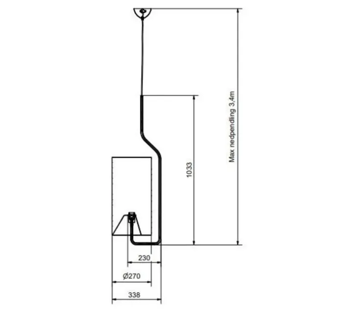 L’applique mesure 33,8 cm de haut et 25 cm de diamètre. Le câble mesure 2,4m.