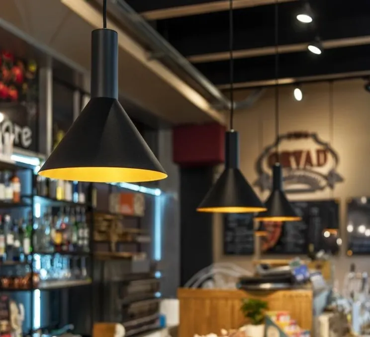 Esthétiquement, la suspension Phelia 20 adopte une forme conique raffinée, parfaite pour créer un point focal dans n’importe quelle pièce. Sa couleur noire à l’extérieur et dorée à l’intérieur offre un contraste visuel saisissant, apportant une ambiance chaleureuse et accueillante. Idéale pour être installée au-dessus d’une table à manger, d’un îlot de cuisine ou dans un coin lecture, cette suspension se marie bien avec différents styles décoratifs, qu’ils soient contemporains ou classiques.