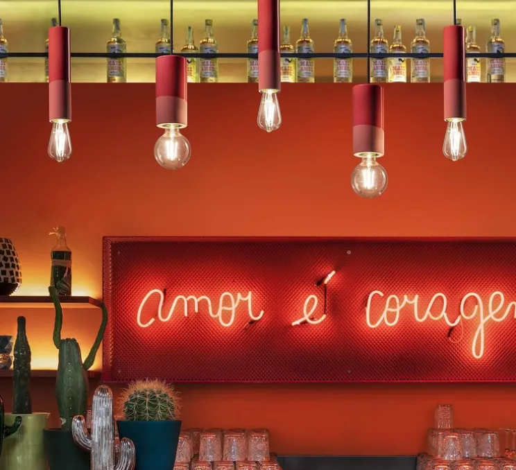 Minimaliste, la suspension Pi Cilindro rouge imaginée par Giorgio Biscaro pour Ferroluce, est la touche déco qu’il vous manquait.