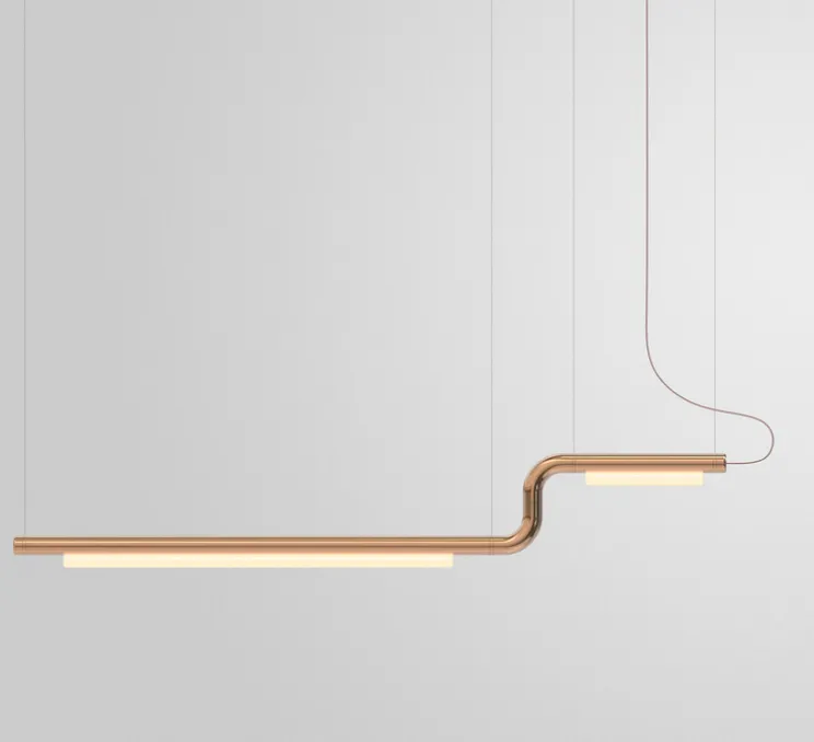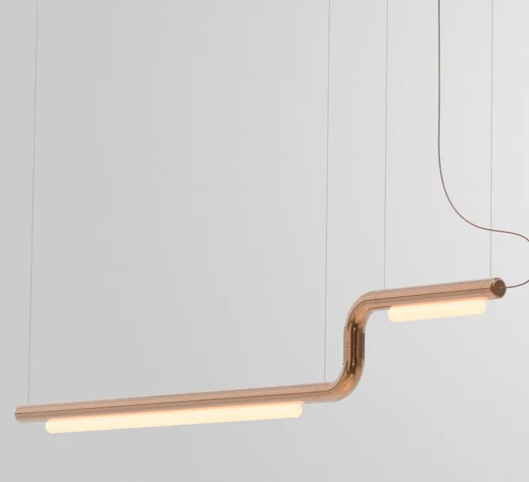 Conçue pour s’adapter dans l’espace dans lequel elle s’inscrit, la collection Pipeline se distingue par sa modularité. Il y avait à l’origine deux luminaires LED linéaires de longueurs différentes (pipeline 40 et 125). Mais ces luminaires peuvent être davantage personnalisés dans une variété de configurations. En effet, Pipeline peut être suspendue horizontalement, à niveau ou à angles variés, individuellement ou à plusieurs, le tout avec une seule sortie électrique.