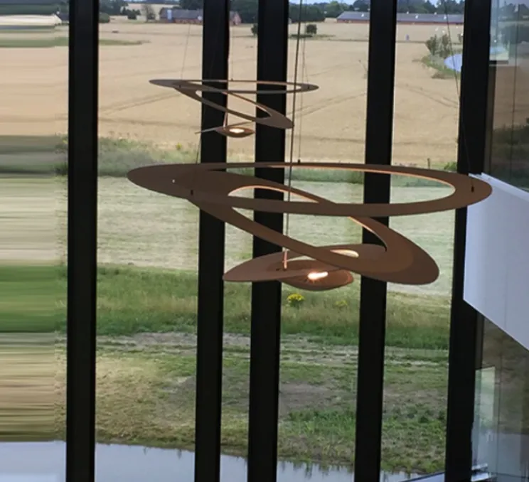 Cette suspension or révèle un design élégant et épuré, composé de spirales en aluminium verni, laissant apparaître un magnifique jeu d’ombres et de lumière ! Pirce diffuse une lumière vers le haut qui retombe doucement vers le bas grâce aux spirales. Cette suspension graphique et circulaire est parfaite pour votre chambre, votre salon, ou toutes autres pièces de votre intérieur. Elle est aussi idéale pour les projets comme une salle de restaurant ou une cage d’escalier d’un hôtel.