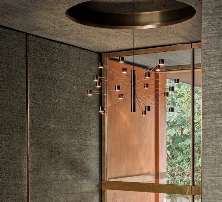 Intégrée à la collection Polar lancée en 2025, elle incarne une approche modulaire et graphique du luminaire décoratif.