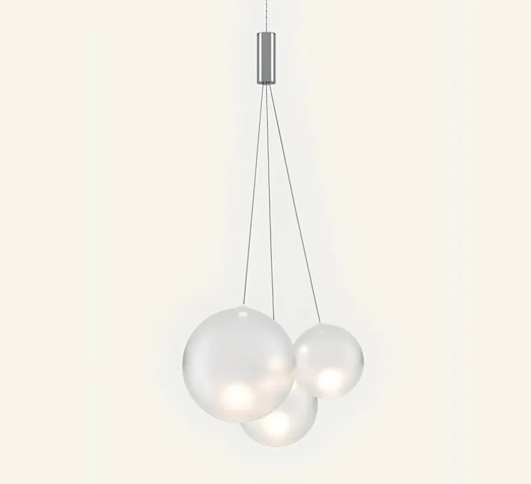 Composée de trois suspensions sphériques en verre soufflé, la Random Solo Cluster se distingue par son design aérien et harmonieux. Les trois sphères blanches givrées apportent une touche de légèreté et de caractère.