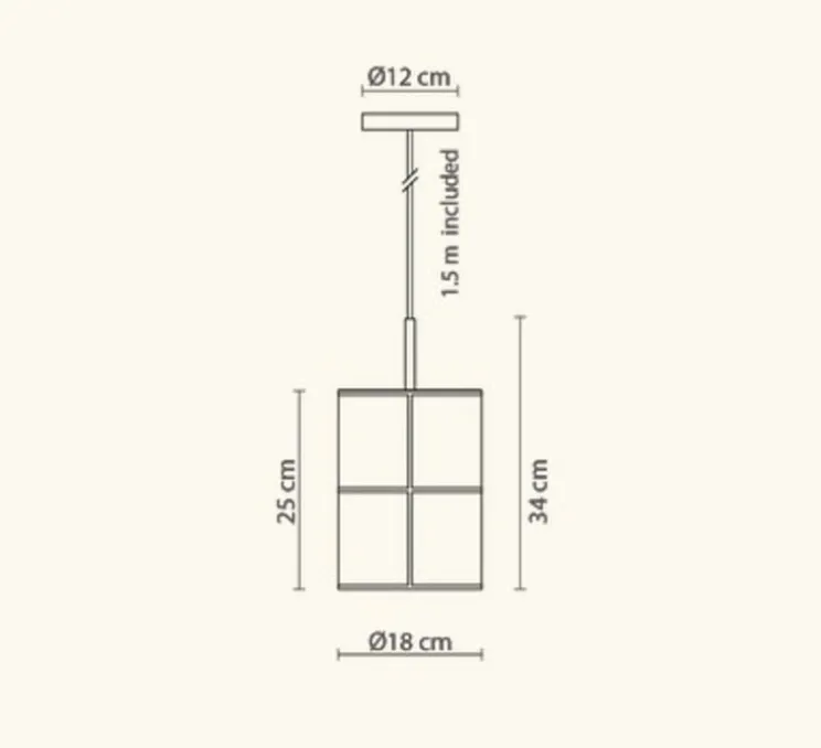 La suspension Rania, d’un diamètre de 18 cm et d’une hauteur de 34 cm, présente une silhouette cylindrique élégante en tissu. Sa structure invisible est quant à elle en métal et lui assure stabilité et durabilité.