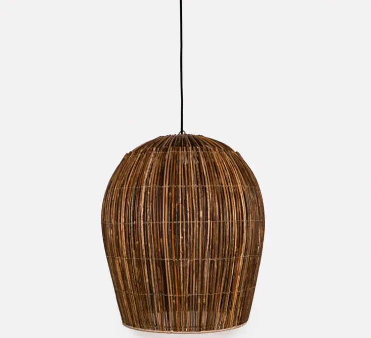 Ressemblante à une ampoule, cette suspension est réalisée en rotin. Un moyen pour eux de créer pour la maison Ay Illuminate un luminaire qui inspire l’exotisme et la fantaisie.