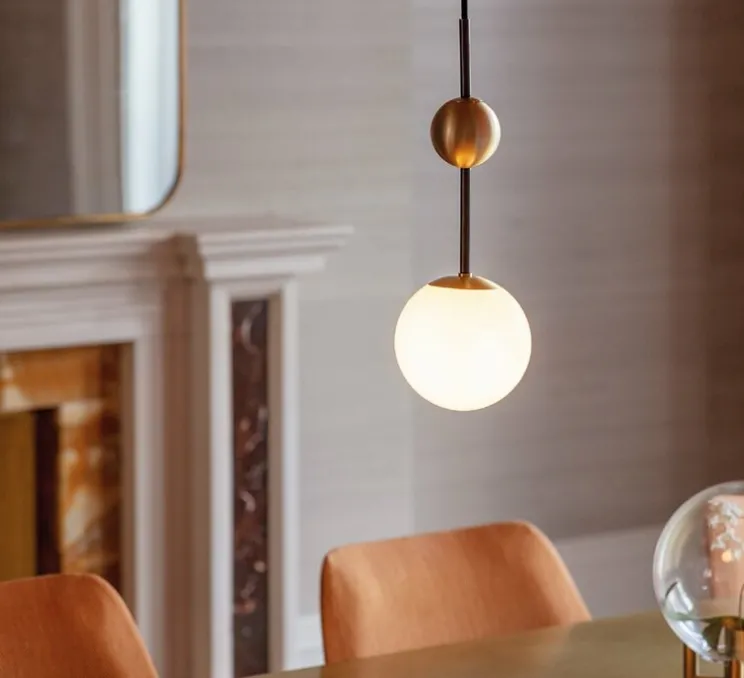 Placée seule ou en nombre la suspension Rift habille parfaitement votre salle à manger, plan de travail de cuisine ou une entrée. Son design épuré et net est composé essentiellement d’une petite sphère en laiton placée au-dessus d’un plus grand globe en verre opale mat qui joue avec la forme et l’équilibre.