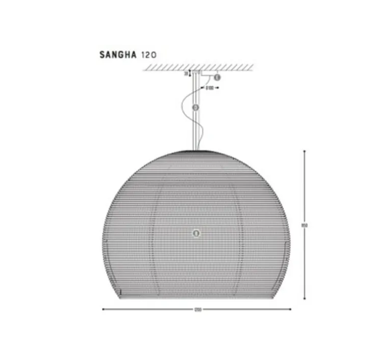 La suspension lumineuse Sangha diffuse la majeure partie de la lumière vers le bas tandis qu’une petite partie du rayon lumineux s’échappe sur les côtés.