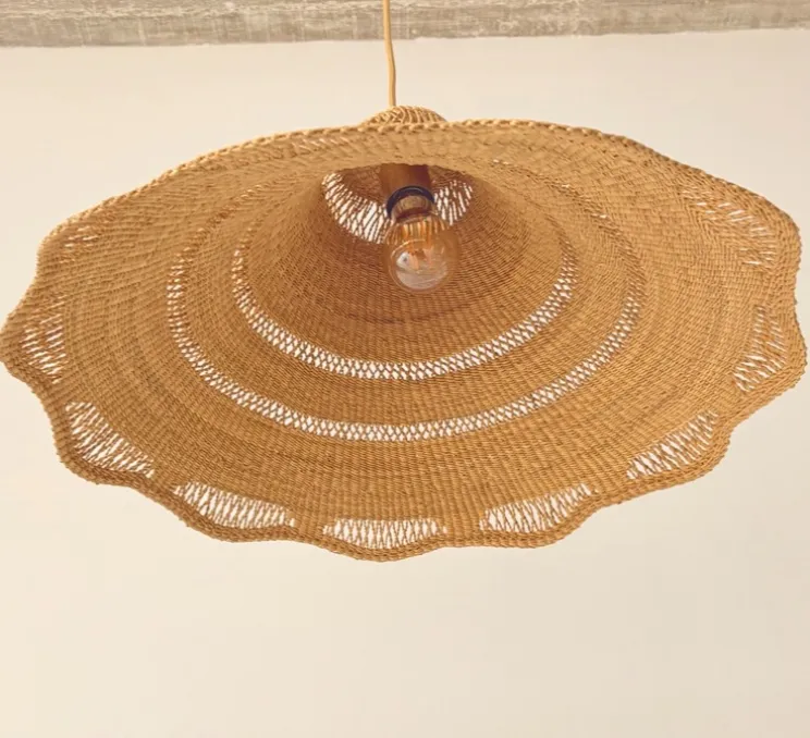 Ce luminaire en fibre naturel et aux teintes douces, donne à votre intérieur un style bohème légèrement ethnique. Associé à des matières brutes, il offre une décoration propice à l’évasion et à la relaxation.