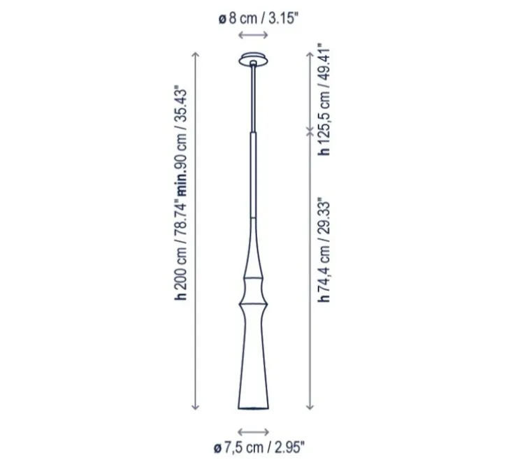 La suspension mesure 74,4cm de hauteur et 7,5cm de diamètre.