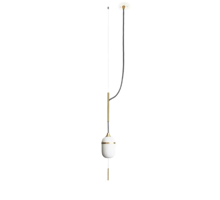 - porcelaine, laiton brossé, acier laqué, fil tissé coloré
