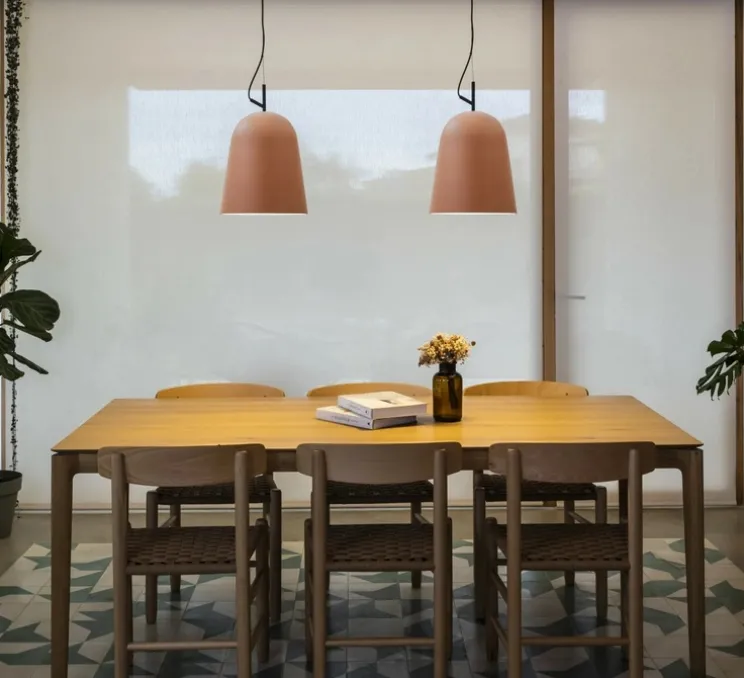 Avec son design conique et sa finition rose aux tendances terracotta, la suspension Studio 290 apporte une touche de fraîcheur et de modernité à tout intérieur. Son allure épurée et scandinave s’harmonise parfaitement avec les espaces de vie contemporains. Conseil déco : suspendez-la au-dessus d’une table à manger ou dans un coin lecture pour créer un point focal saisissant et illuminer la pièce de manière directe et efficace.