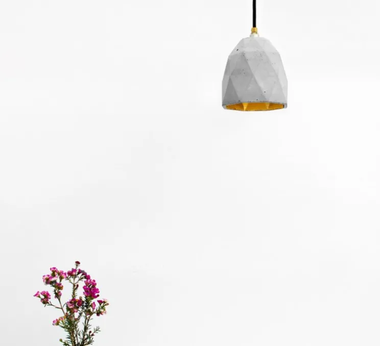 Coulée et fabriquée à partir de béton, cette suspension combine une couleur or noble avec le gris contrastant du béton brut.