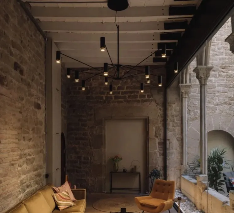 Cette organisation rend la suspension flexible et adapté aussi bien aux espaces qu’aux petits. Ainsi le luminaire se plie et se déplie selon vos envies.