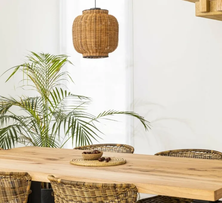 Conçue avec soin, cette suspension marie élégamment le métal au rotin, incarnant ainsi une harmonie entre modernité et authenticité.