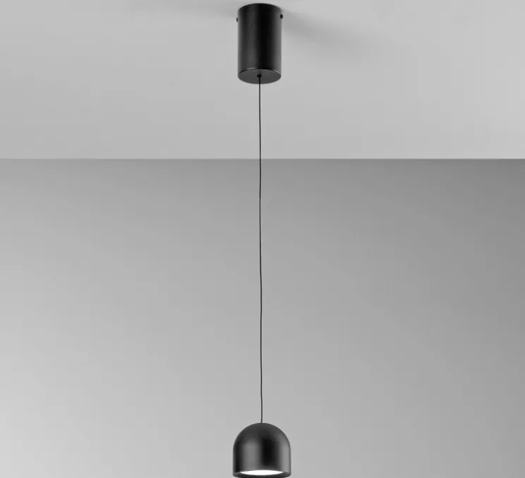 Son design en demi-sphère et son coloris noir apportent une touche de légèreté visuelle à l’espace. Réalisée en métal avec un diffuseur en verre, Yoyo s’inscrit dans un style décoratif épuré, idéal au-dessus d’un îlot central, d’un plan de travail ou en série dans un couloir. Sa forme élancée et sa hauteur généreuse (jusqu’à 2 mètres) structurent les volumes avec discrétion.