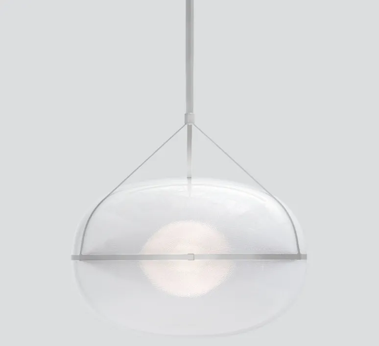 Découvrez l’étonnante suspension Iris, combinaison A/A, finition argentée, imaginée par Caine Heintzman pour la maison canadienne A-N-D.