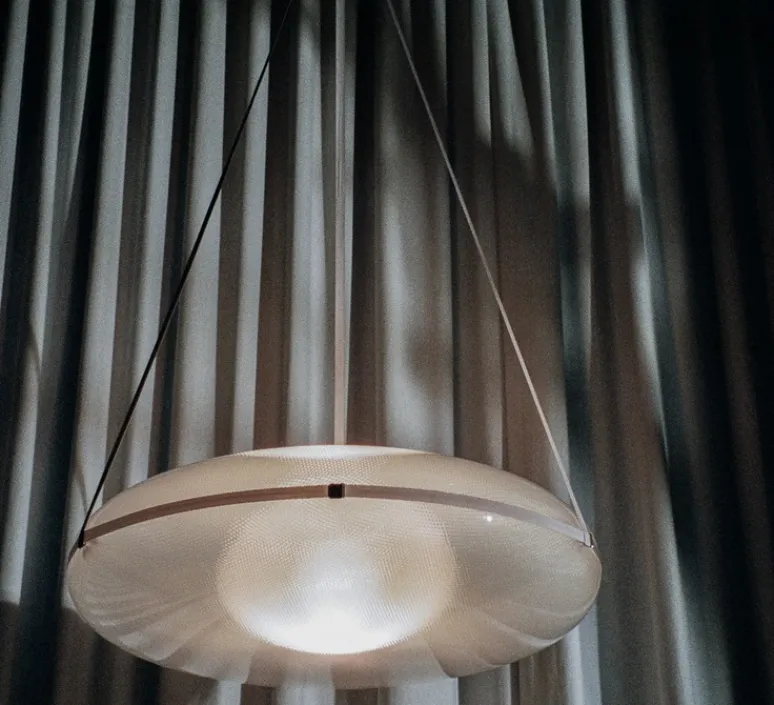 L’Iris associe deux formes – un profil A plus grand et un profil B plus petit, ce qui donne un total de quatre combinaisons possibles. La suspension est disponible dans une finition noire ou argentée.