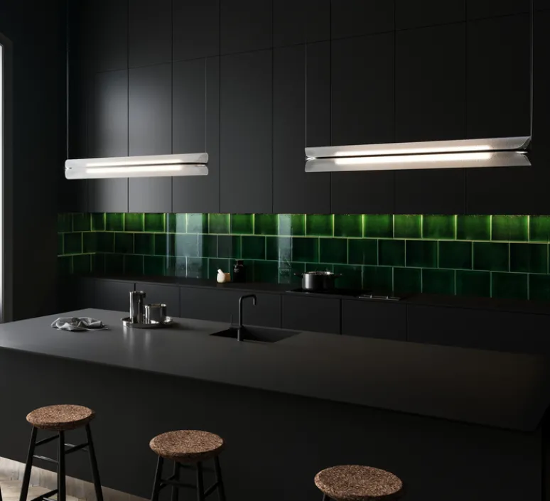 Doté de compétences architecturales, le système d’éclairage suspendu Vale a été conçu pour s’adapter dans l’espace où il s’inscrit. Il peut être suspendu horizontalement ou verticalement, en un ou plusieurs pendentifs. Les produits Vale peuvent s’attacher entre eux jusqu’à 6 pièces, le tout avec une seule sortie électrique. La collection Vale possède plusieurs finitions de cadre : anthracite, rouille ou silice.