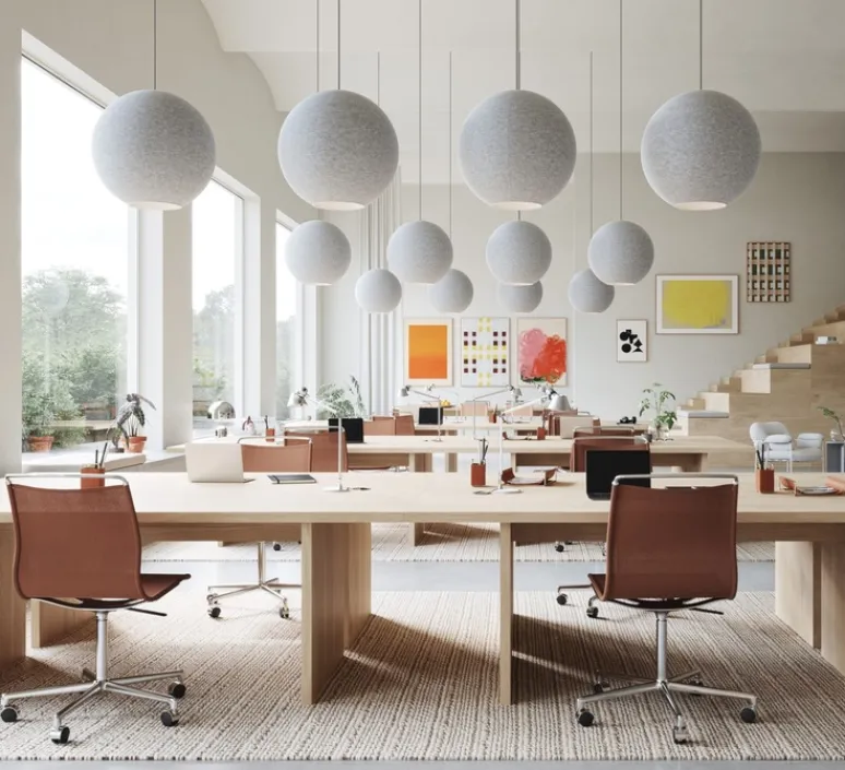 Moon se présenter sous la forme d’une sphère en matériau acoustique à l’intérieur de laquelle se trouve un module LED. Grâce à sa double fonction : absorbeur de sons et luminaire, cette suspension est très pratique pour les espaces à la recherche d’insonorisation. Sa forme ludique rend ce luminaire idéal pour les zones de bureaux, de détente et de jeux, aussi bien dans un environnement public que privé.