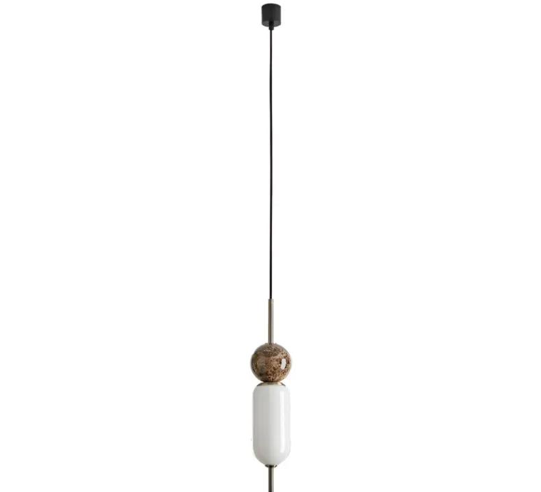 Élégante et sculpturale, elle associe une structure en acier aux nuances modernes, un corps en marbre et un diffuseur en verre opalin soufflé.