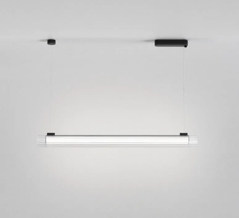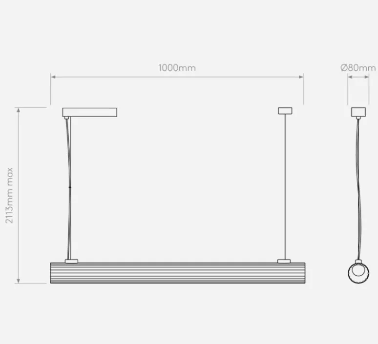 L’ampoule LED est incluse avec une puissance maximale de 21,1W. L’indice de protection est IP20, la suspension ne peut être installée qu’en intérieur. Dimmable. Driver non requis. La suspension IO Pendant 1000 mesure 100cm de largeur et 8cm de profondeur.