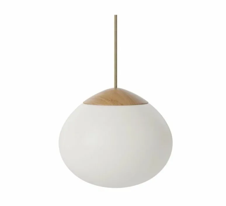 Cette lampe est fabriquée en chêne certifié FSC et en verre opale blanc soufflé à la bouche, et comprend un cordon de 3m parfaitement intégré dans le design.