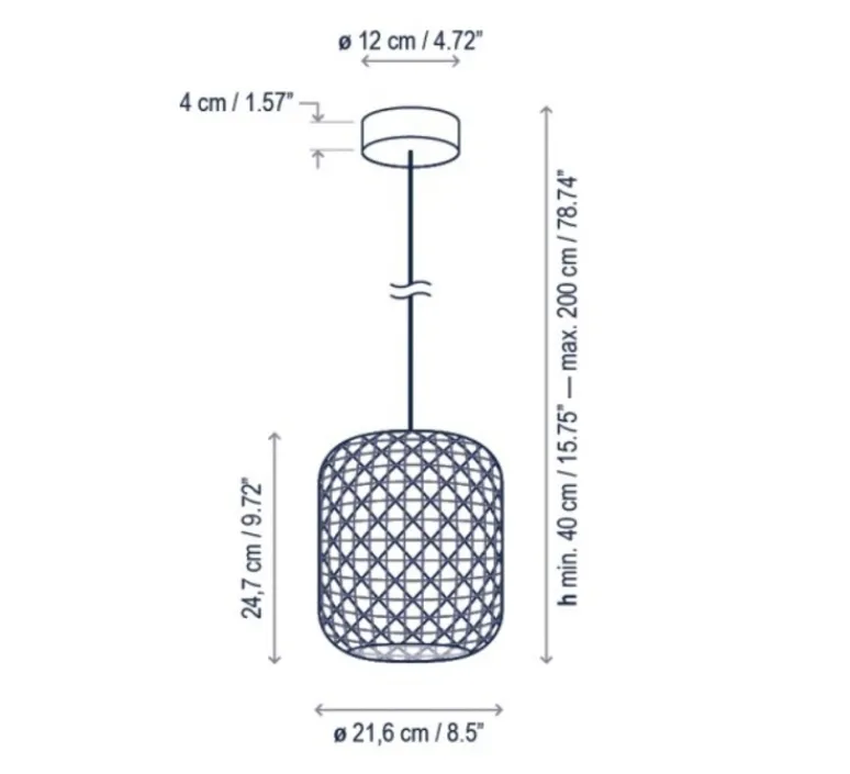 La suspension mesure 21,6cm de diamètre pour 24,7cm de hauteur.