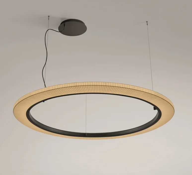 Voici la suspension Roda S/150 crème imaginée par Joana Bover pour la maison espagnole Bover.