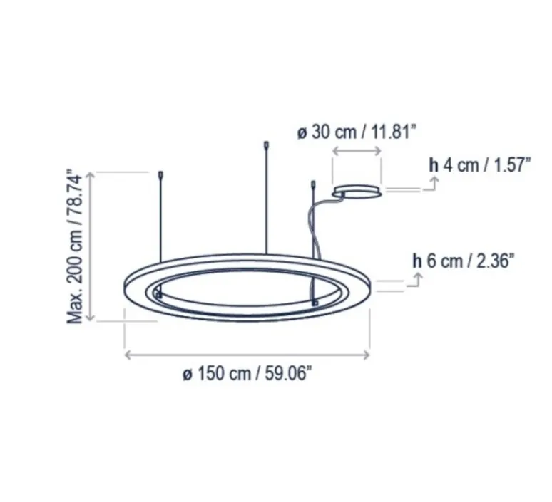 Le luminaire mesure 150cm de diamètre.
