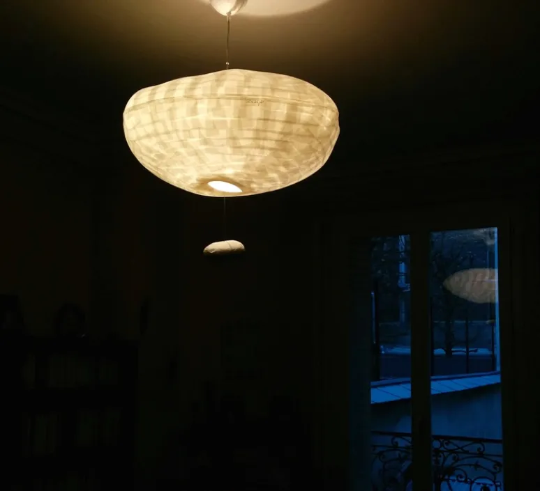 La matière noble du papier japonais offre une douceur extraordinaire à l’atmosphère de votre pièce. Dans un salon, une entrée, une chambre, la suspension Giboulée ne passera pas inaperçue.