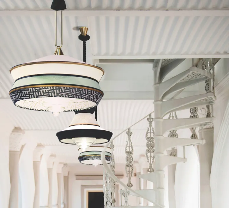 Le studio de design Servemuto met en avant à la fois la culture sud-américaine et la culture des tropiques en dessinant des suspensions inédites inspirées des luminaires des années 1940.