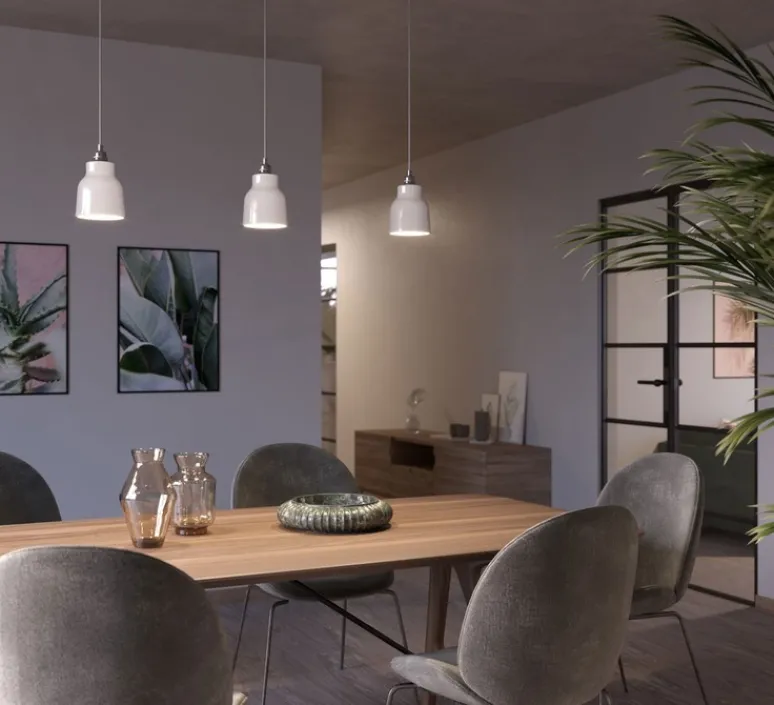 Techniquement, la suspension mesure Ø13 cm de diamètre et 15 cm de hauteur, avec un câble blanc d’une longueur de 1,2 m. Le luminaire est conçu pour accueillir une ampoule Led E27 d’une puissance maximale de 7W, non incluse, avec un éclairage direct et une fixation fixe. Dimmable selon l’ampoule choisie, ce modèle allie fonctionnalité et design. Douille à double bague métallique et câble à 3 fils conducteurs.